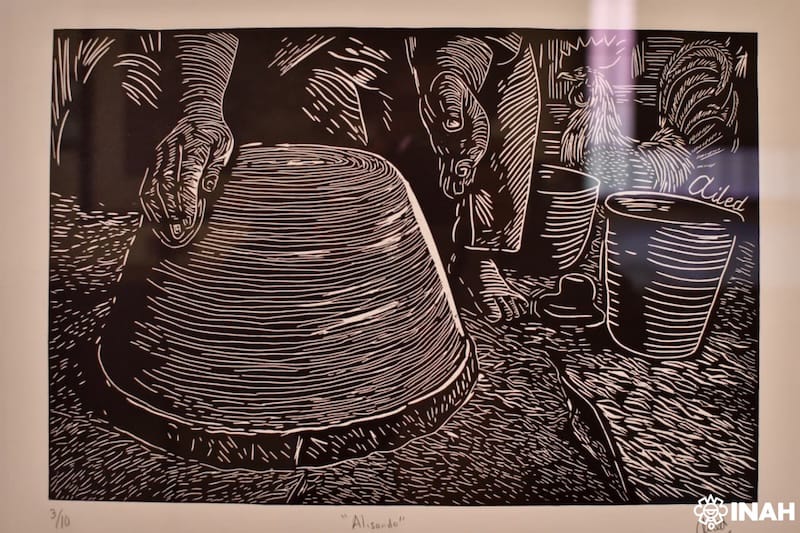 TLAXCALA, Tlax., 24 de noviembre de 2025.- La comunidad de La Trinidad Tenexyecac, municipio de Ixtacuixtla, en Tlaxcala, se caracteriza por una raigambre alfarera, donde los maestros y maestras del barro convierten el barro en cazuelas, jarros, comales, macetas y platos. Dicha tradición inspiró a la artista oriunda de esa localidad Albadelia Solano Juárez, para plasmar mediante la técnica del grabado varías de esas creaciones, que presenta en la muestra gráfica Reverdeciendo memorias de barro.