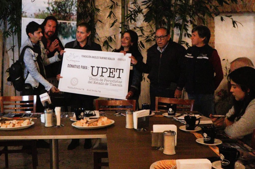En el marco de esta conferencia de prensa, el matador, Teodoro Gómez a nombre de la empresa Ángeles Taurinos, entregó un cheque que ampara el donativo a la Unión de Periodistas del Estado de Tlaxcala, derivado de la novillada rosa, realizada el pasado 5 de diciembre, en la plaza de toros Jorge Aguilar «El Ranchero».