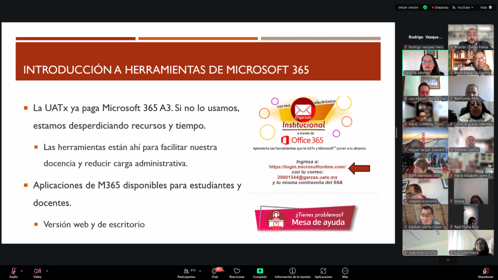 La Maestra Sánchez Pérez resaltó que la UATx cuenta con 𝐌𝐢𝐜𝐫𝐨𝐬𝐨𝐟𝐭 𝟑𝟔𝟓 A3, una herramienta disponible para docentes y estudiantes, en versión web y de escritorio, en la que se puede acceder a través del correo institucional, facilitando la carga docente y administrativa, así como las diversas actividades de los estudiantes.