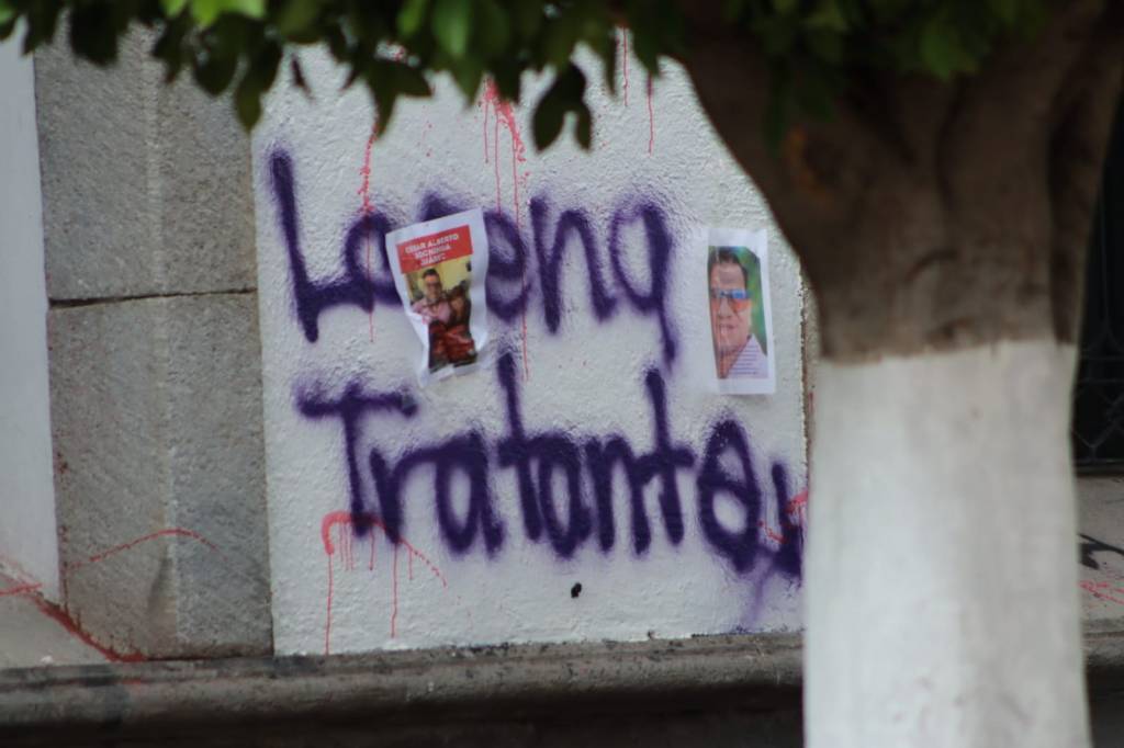 Con pancartas en mano gritaron, ¡Justicia!, ¡Justicia!, además de pintar consignas como “Lorena tratante” y “Fue el Estado”, cabe destacar que este año la afectación al Palacio Legislativo solo fue con pintas, a diferencia del año pasado donde existieron más destrozos.