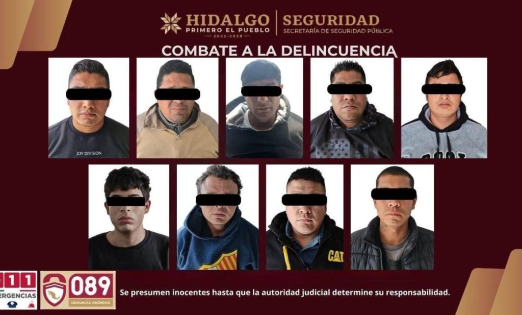 Mediante labores de inteligencia operativa y en coordinación con elementos de la Guardia Nacional (GN), Secretaría de la Defensa Nacional (Sedena), Procuraduría General de Justicia del Estado de Hidalgo (PGJEH) y Mando Coordinado de Apan, la Secretaría de Seguridad Pública de Hidalgo (SSPH) llevó a cabo una intervención en la localidad de Los Voladores, municipio de Apan, donde fueron aseguradas nueve personas presuntamente vinculadas con actividades ilícitas relacionadas al robo y desmantelamiento de vehículos de carga pesada.
