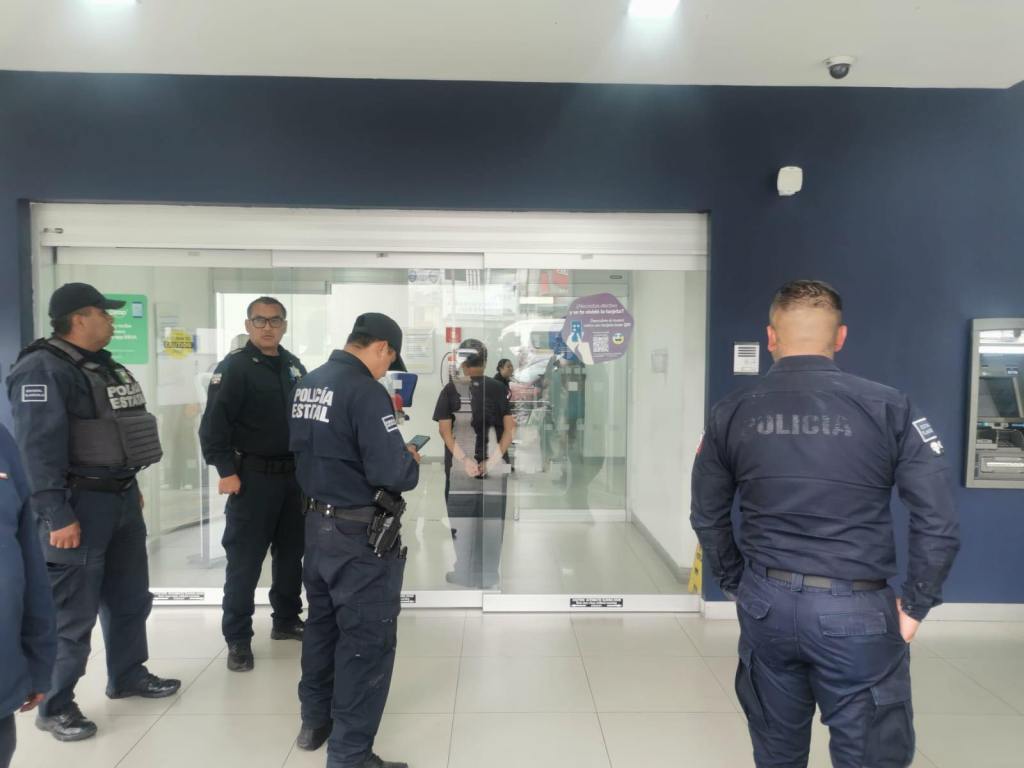 Al llegar al lugar, los elementos fueron informados por personal del banco BBVA que una mujer que se encontraba en la zona de espera fue amagada por un masculino, quien le arrebató la bolsa en la que portaba efectivo que tenía la intención de depositar.