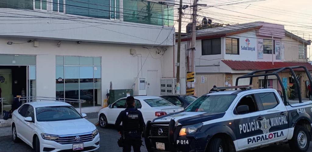 TLAXCALA, Tlax., 6 de abril de 2026.- Elementos de Seguridad Pública, Vialidad y Tránsito Municipal de Papalotla atendieron el reporte de un robo en una institución bancaria ubicada en Panzacola.