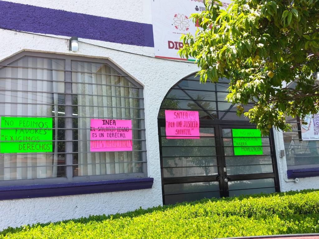Sobre las peticiones señaladas en las pancartas colocadas este miércoles en las oficinas de la capital del estado, estas destacan leyendas como “No pedimos favores, exigimos derechos”, “INEA el salario digno es un derecho, no es negociable”, “SNTEA por la justicia social”, “La Constitución no se interpreta a conveniencia” y “Si no hay solución, habrá movilización”.